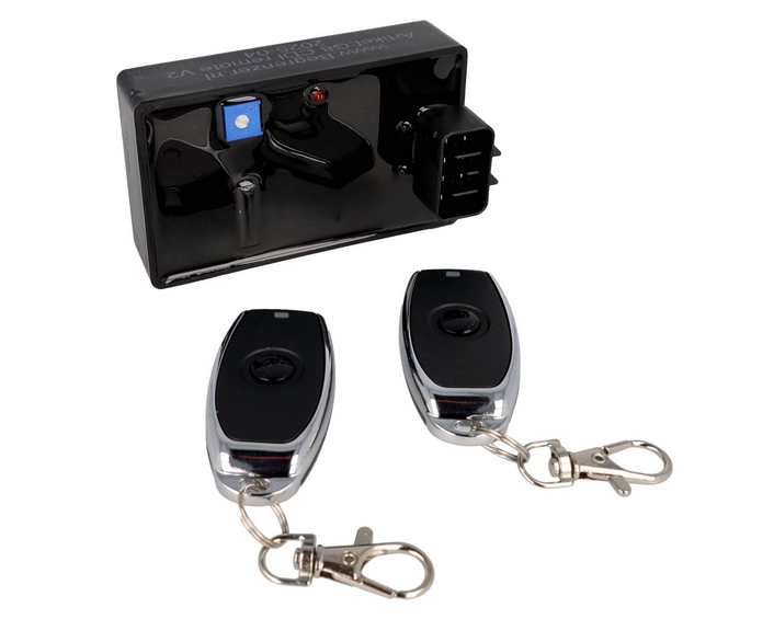 Snabb CDI med justerbar EURO-begränsare med hjälp av en skruv på CDI. Begränsaren kan stängas av med fjärrkontroll. via tändningslåset kan begränsaren aktiveras igen (stäng av motorn). Med kodad unik fjärrkontroll, så att den inte kan kopieras