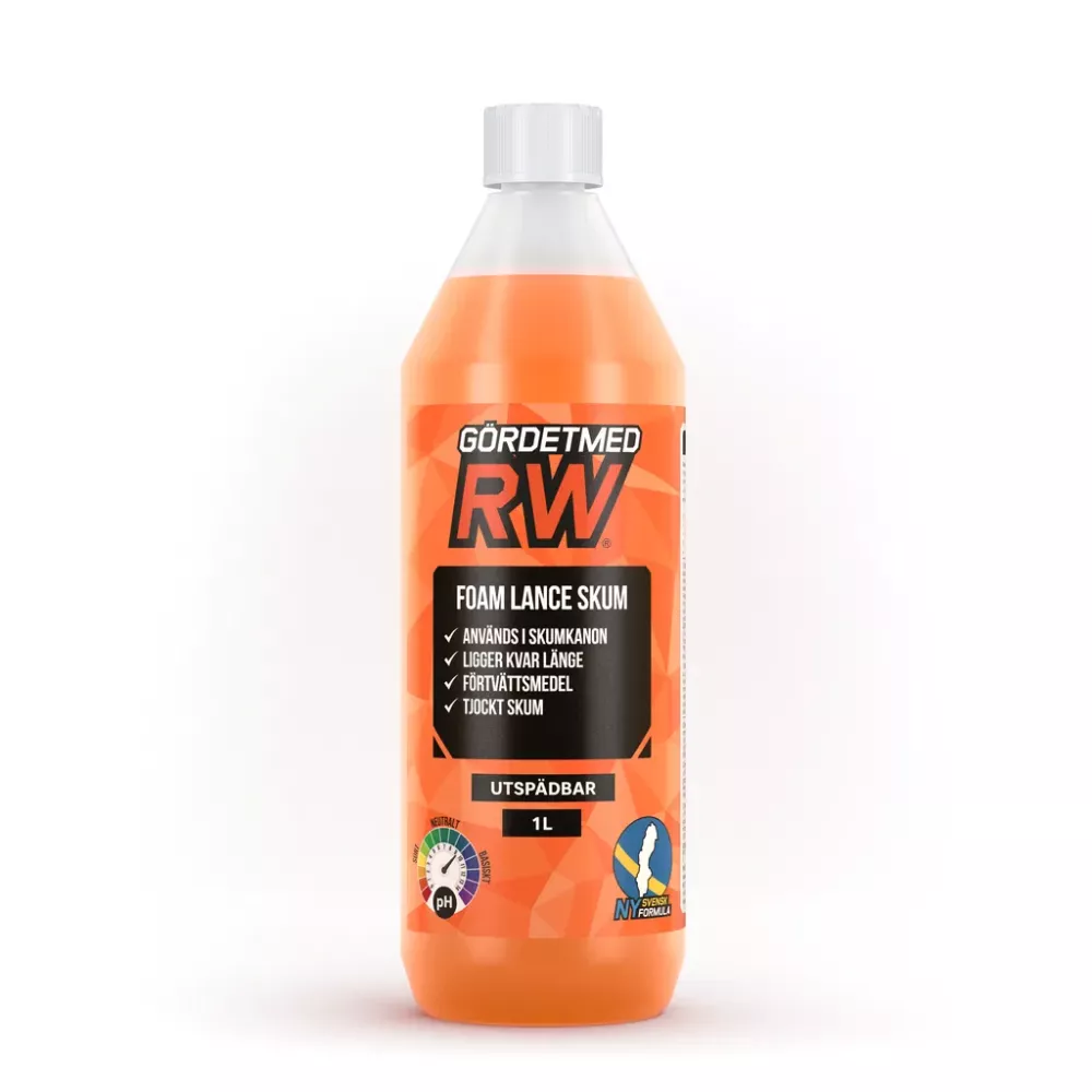Foam Lance-skummet är ett basiskt avfettningsmedel som skapar ett tjockt och långvarigt skum vid applicering med Foam Lance. Skummet kapslar in smuts, trafikfilm, pollen och vägsalt, vilket gör att smutsen lossnar utan att du behöver gnugga. Med sitt högre pH-värde ger det bättre avfettning än vanligt bilschampo, samtidigt som det är skonsamt mot lackskydd och vax.