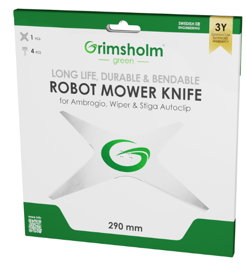 Kniven är utvecklad för att leverera ett kraftfullt, jämnt och effektivt klippresultat. Den noggrant kontrollerade härdningsprocessen gör att kniven behåller sin flexibilitet, vilket minskar risken för avbrutna knivar om robotgräsklipparen skulle köra på sten eller andra hårda föremål i gräsmattan.
